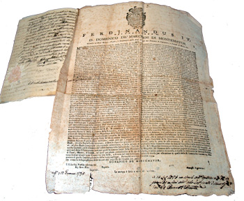 Decreto di Re Ferdinando IV del 13 Novembre 1794 per l’uso del “tomolo”.