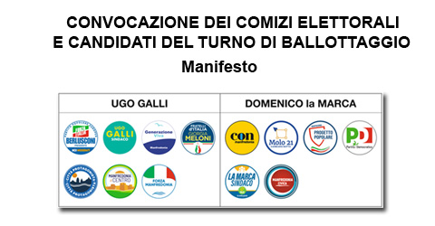 Manifesto elezione del Sindaco e del Consiglio Comunale, turno di ballottaggio di domenica 23 e lunedì 24 giugno 2024, convocazione dei comizi elettorali e candidati del turno di ballottaggio