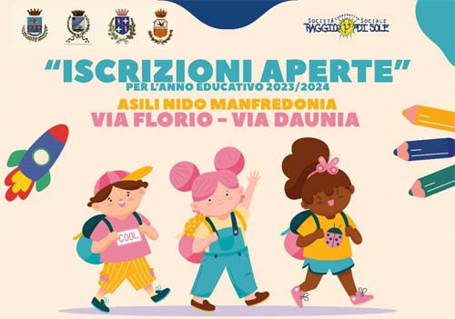 Iscrizione asili nido“Si rende noto che le iscrizioni al servizio di Asilo Nido, per l’anno educativo 2023/2024, a favore di bambini da 3 mesi a 3 anni di età, sono a cura del soggetto gestore del servizio “Società Cooperativa Sociale Raggio di Sole”.